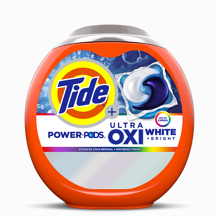 Get brilliant whites in one easy step with Tide Power PODS® Plus Ultra OXI White and Bright. A new laundry detergent that brightens whites without bleach, Tide Bright and White has 2X the whitening power to make your loads of white look whiter and brighter. No pretreating, bleach, stain removers, or additives necessary—Tide White and Bright Power PODS® are designed with 50% more cleaning power.* One Tide Power POD equals the size of a regular-sized one, meaning bigger cleans better. Tide White and Bright White is safe on all colours and powerful coldzymes give it the ability to clean, even in cold water. Give your whites the brightness they deserve with Tide, Canada’s #1 most trusted laundry detergent brand**.